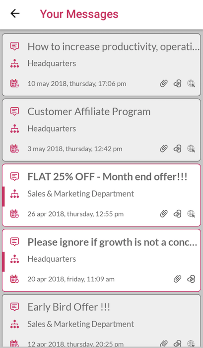 Linking other In-App Elements: You can link app elements from other features present in your account. The app user will see the links along with the sent broadcast and will be directed to the attached resource when clicked. You can link