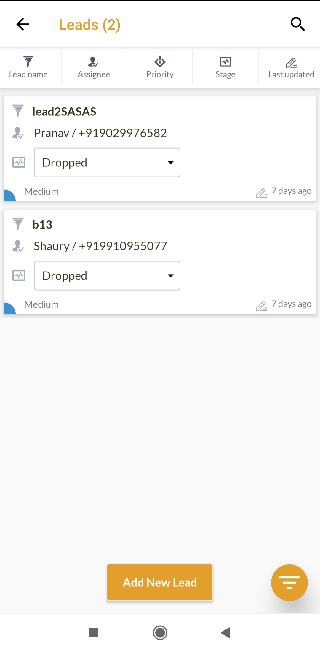 The Leads list contains the list of all the leads in the system. There are two tabs containing the assigned and unassigned leads.